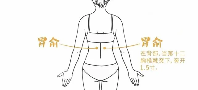 位于背部,在第12胸椎棘突下,旁开1.5寸(脾俞往下数1个胸椎棘突,往旁边1.5个拇指指间宽度)