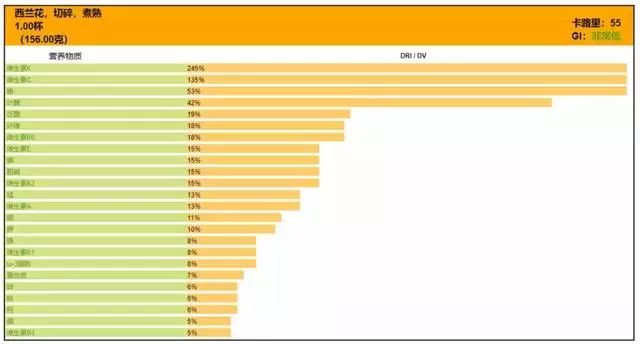 图 | 最健康的蔬菜——西兰花所含有的营养物质,DRI/DV:膳食营养素参考摄入量/日需量(来源:)