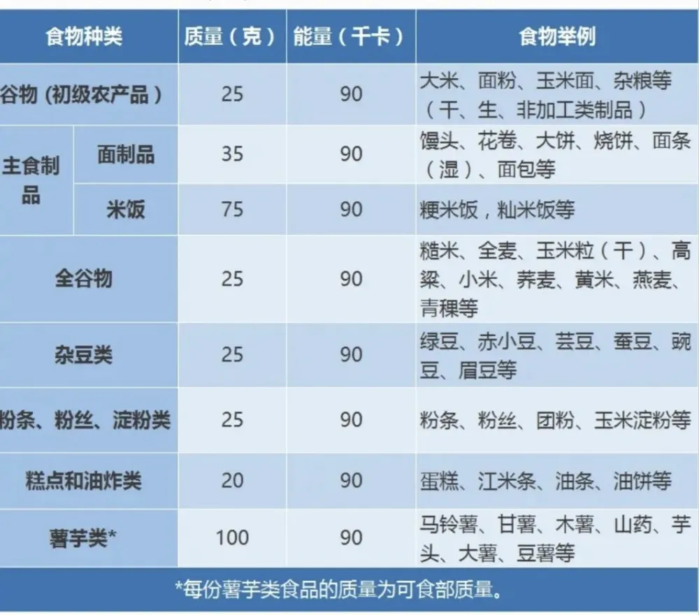 ①主食类:大米、小米、玉米、黑米、燕麦、荞麦等可按同等重量来换,比如一两大米跟一两黑米的能量是基本相同的,所以不能认为黑米是粗粮就可以多吃。