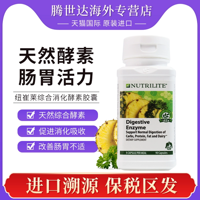纯天然的消 化酵素、镇痉剂,无任何副作用。 安利综合消化酵素胶囊可以帮助您: •防治消化不良,肠胃不适,肠胃痉痛。 •缓解肠胃胀气不适,是天然镇痉剂。 •天然消化酵素,帮助消化及分解糖类、脂肪和蛋白质等。 •帮助合成酵素,制衡胃酸,保护肠壁。 •防治消化性溃疡。 •帮助修复肠胃溃疡。 •改善肠胃不适、腹清还泻。 •改善醉酒或暴饮暴食引起的肠胃不适。 •健胃,提振消化功能,改善消化问题。 •祛除生理期间胀气、水肿、痛经、消化不良。 •祛除胀气、恶心、呕吐、害喜、所胃、晕车、晕船。 营养成分: 综合酵素 302mg菠萝分解酵素 500,000FCC PU 胜太酵素 7,812FCC HUT 蛋白分质 3.0 25FCC SAPU 蛋白分质 4.5 25,000FCC HUT 碳水化合物辅酵素 200FCC SU 淀粉分解酵素 1000FCC LU 纤维酵素 400FCC CU 葡萄糖淀粉酵素 10FCC AGU 乳糖分解酵素 3000FCC LU 脂肪分解酵素 100FCC LU 植物浓缩素 33mg螺旋藻浓缩素