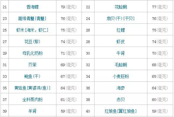 含“硒”最多的食物排行(指100克可食用食品中的含量):表中单位毫克改成微克!