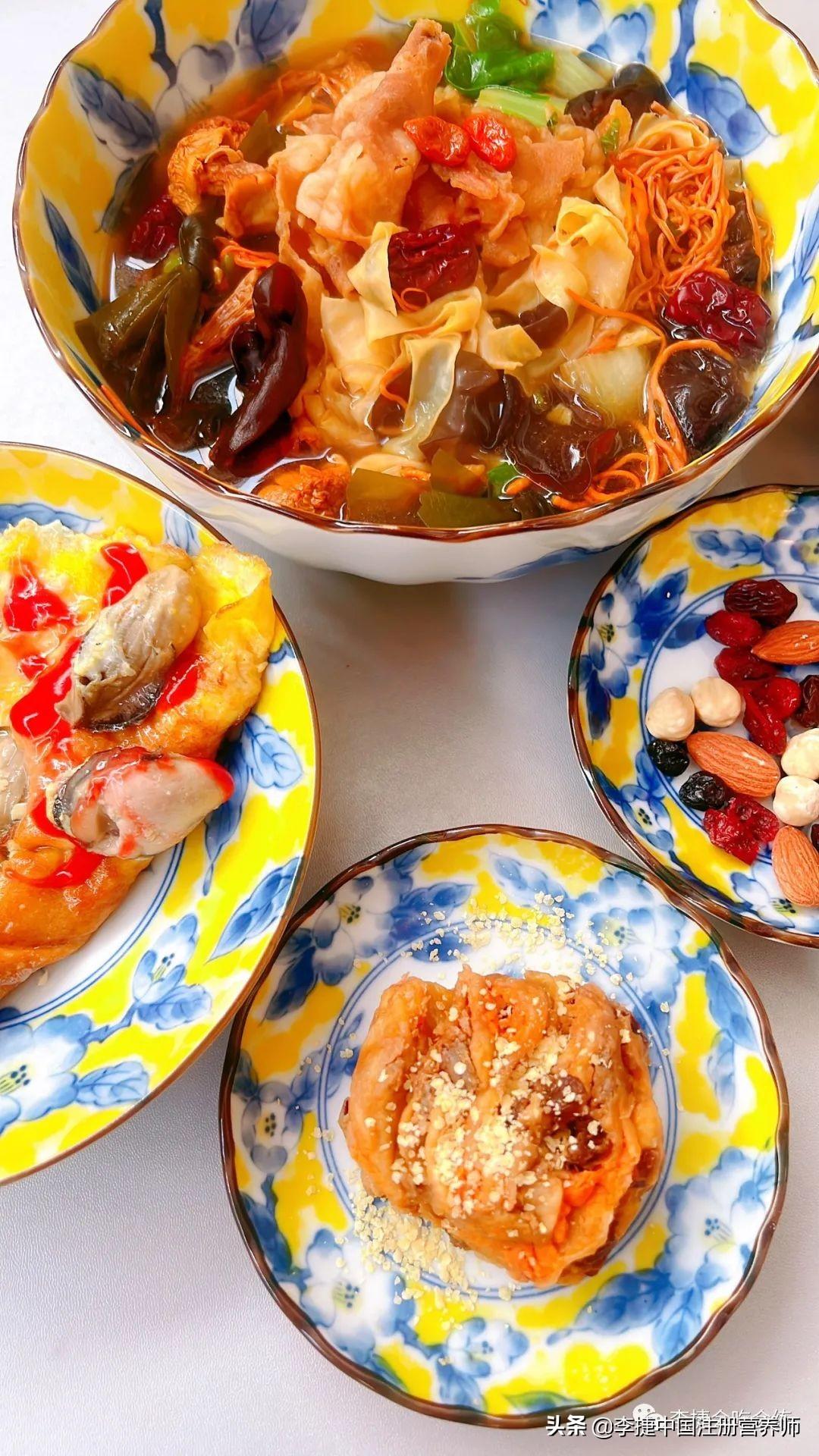 山的味道海的味道山的精华海的精华,这还有裙带菜,非常丰富。蔬菜每餐要吃到一个餐盘的比1/4多一些。就是蔬菜水果加起来要有要有一半。