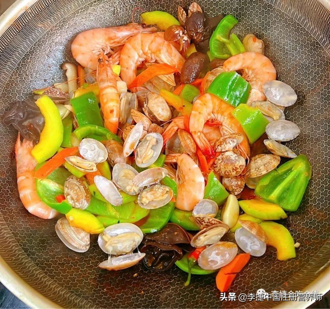 6,很少吃红肉。每个月两三次。白肉如鸡肉等禽肉一周一两次。虾和贝类里面的铁和牛肉一样多,不用担心缺铁性贫血。