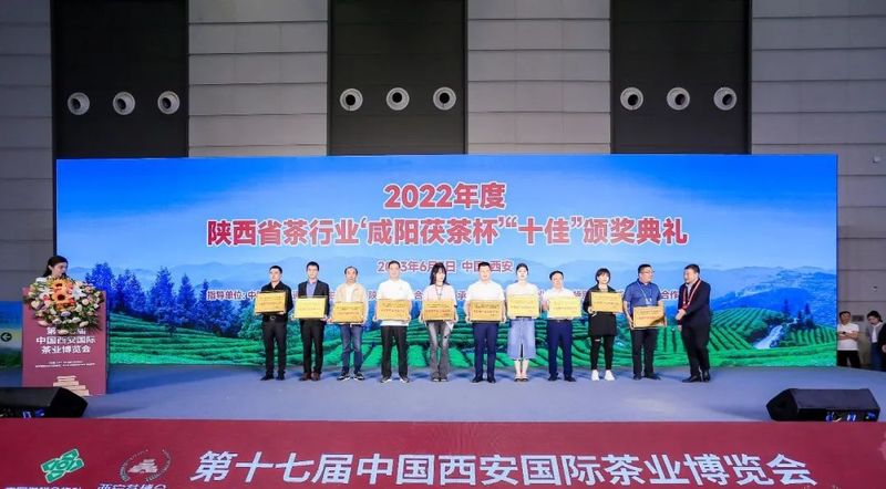 6月3日,由中国茶叶流通协会指导、陕西省供销合作总社主办、陕西省茶业协会承办、咸阳市供销社支持举办的2022年度陕西省茶行业“咸阳茯茶杯十佳”评选颁奖典礼在第十七届中国西安国际茶业博览会上举行。