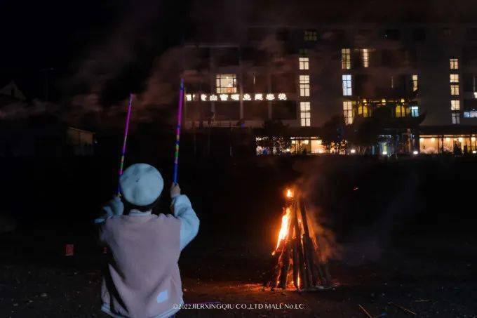 晚上,点起篝火,放烟花,一整天的快乐正式收尾。