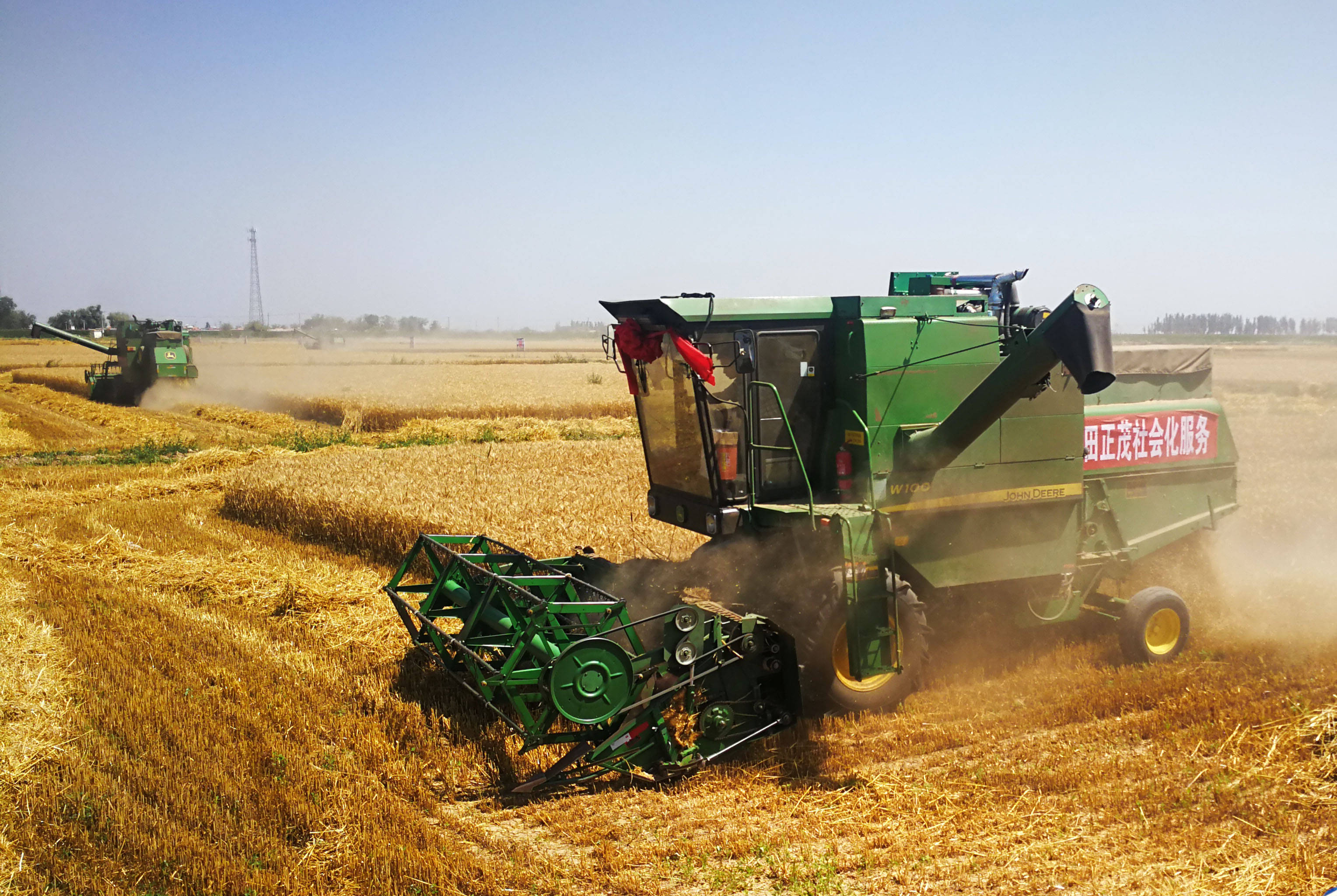 图为收割机在收割稻谷。