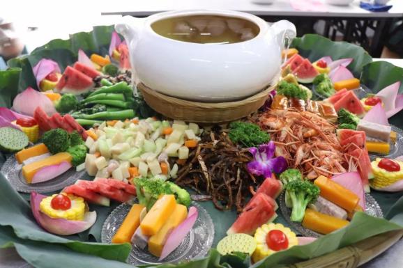 簸箕宴?簸箕能吃吗?大概很多年轻人都不知道。簸箕宴源于旧时三水当地人一起外出劳作,中途休息时就把各自带的食物拿出来放在芭蕉叶上一起分享。因此簸箕宴象征的是分享和团圆,所以也是邻里亲朋间聚会的首选。