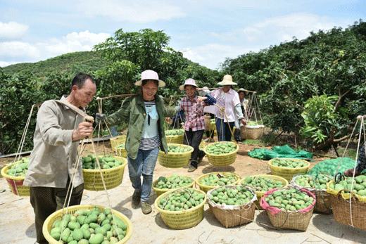 田东县林逢镇东养村芒果产业核心示范区喜获丰收。