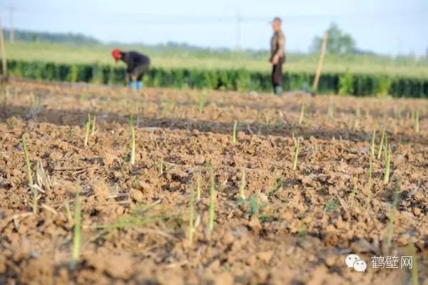 在姬屯村外,一片近百亩的地块上,几位工人正在浇水,田垄上一株株笋状植物生机勃勃。这又是什么?淇滨区绿源蔬菜专业合作社总经理李海宽说:“这些就是芦笋,之前你们看到的是芦笋的幼苗植株。”