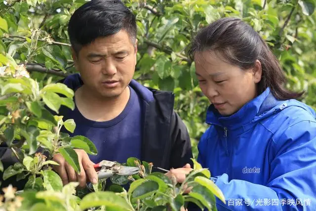 2013年,杨会选流转70余亩土地,开始种植“晚秋黄梨”和苹果、桃等水果。他从电视新闻中看到“富硒水果”种植的信息,就外出参观学习取经,还请教中国农科院、河南省农科院的有关专家、教授,认真向他们拜师学艺。在2015年,他进行“富硒”土壤调理,种植了“富硒”梨20亩、“富硒”苹果、桃30亩。当年,他种植的“富硒”水果收到了较好的经济效益。图为,杨会选和妻子郭会霞正在给果树剪枝。