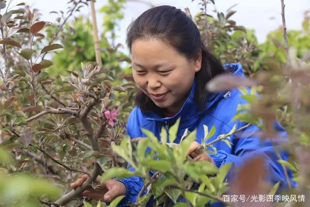“硒”是生态环境中一个十分重要的微量元素,缺硒是人体“克山病”、“大骨节病”的主要原因。近30年来,微量元素硒的作用在国内外引起了普遍关注,据我国“硒与健康”数据库营养研究表明,硒是人体健康和动物体内必需的14种微量元素之一,且兼具营养、毒性和解毒三重生物学功能,被称为生命的“保护剂”!图为,杨会选的父母亲在“富硒”苹果园里进行“梳花”。