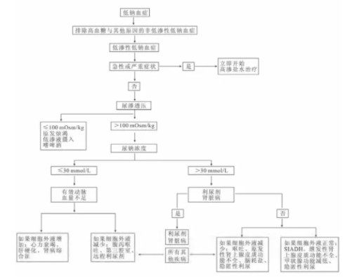 临床上低钠血症非常常见,但重视程度仍有欠缺。临床上可见假性低钠血症、高血糖及其他原因导致的非低渗性低钠血症,完善肝肾功能、血尿离子、血容量、甲状腺功能、肾上腺皮质功能、垂体功能等相关检查以协助病因诊断。其治疗原则是基于病情的全面评估,分清缓急;密切监测,权衡利弊,控制补钠速度。