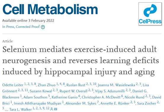 该团队的首席研究员沃克博士表示,硒元素是通过促进神经元的产生来提高和改善小鼠的认知能力。在研究中,沃克博士还发现运动提高了血液中运输硒的关键蛋白的水平,推测这可能是运动减缓大脑衰老的原因之一。