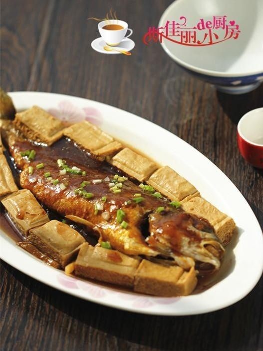 (4)另烧一锅水将面烫熟,放入作法3的汤中,再加入作法2的黄鱼条,转小火煨煮约5分钟,到面入味即可。 2、黄鱼汤 材料: