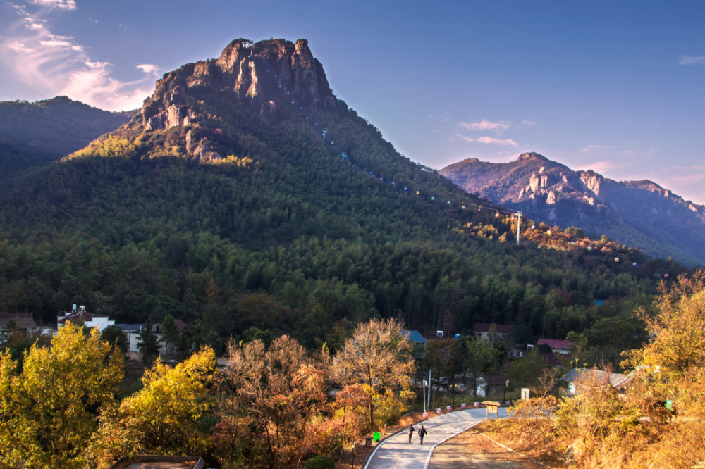 来到凤凰山,远望相思树,异株同干连理枝,如同恋人相拥,情意缠绵。一路经过小桥流水,穿过村庄,踏着满地金黄的银杏落叶,到达滴水崖,满眼的金黄映衬出更美的瀑布。