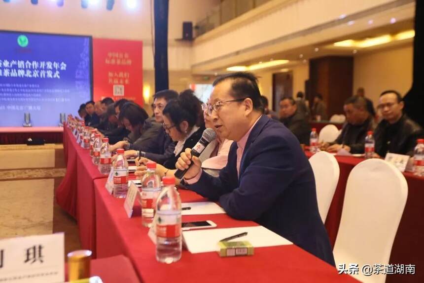 来首都北京参加【2019第二届南北茶业产销合作开发年会】暨【创始2019中国公众标准茶】品牌全国市场北京首发式的单位领导和嘉宾有:中国农业国际合作促进会茶产业委员会副会长、北方销区16省市茶业合作顾问、原湖北省农业厅副厅长万福祥,中国农业国际合作促进会茶产业委员会副会长兼秘书长魏有,中国农业国际合作促进会茶产业委员会副会长、北方销区十六省市茶业合作创建人石若刚,哈尔滨茶业协会会长、哈尔滨大发国际集团董事会主席周敏,国家粮食与物资储备库794中心主任、北方国茶库负责人李琪,万里茶道(中国)协作体副主席、一带一路中国茶文明之旅专项基金主任胡明方,中共筠连县委副书记、县长刘朝平,中共泰顺县委常委统战部长童德平,中共鹤峰县常委宣传部长刘支皇,新昌县政协原副主席、新昌县茶文化研究会会长袁振华,北方销区十六省市茶业合作北京运营中心主任、北京茶道文化艺术促进会驻会常务副会长兼秘书长李强,北方销区十六省市茶业合作内蒙古运营中心主任、内蒙古茶行业协会会长刘琪,北方销区十六省市茶业合作、山西省茶叶协会会长吴风呜、秘书长丁丽,北方销区十六省市茶业合作、宁夏茶叶流通协会会长赵天佑,北方销区十六省市茶业合作、宁夏茶行业协会会长强世国,北方销区十六省市茶业合作、辽宁省茶文化研究会会长李哲,北方销区十六省市茶业合作、黑龙江省茶业协会会长张莉莉,北方销区十六省市茶业合作河南运营中心主任、河南省茶艺文化交流协会会长迟奥京,北方销区十六省市茶业合作西北运营中心主任、陕西西商茶叶文化协会会长方超,北方销区十六省市茶业合作青海运营中心主任、青海省茶行业协会会长马玉平、副会长王文艳,北方销区十六省市茶业合作辽北运营中心主任、辽宁省茶业协会副会长李红,北方销区十六省市茶业合作河北运营中心、河北省茶产业促进会荣誉会长谢美生、副会长王贺平、姚本玲、王庆山、张金涛、孙志强,北方销区十六省市茶业合作、沈阳市茶业协会会长李晖,北方销区十六省市茶业合作大庆运营中心主任、大庆茶叶协会会长孙跃义,北方销区十六省市茶业合作、北京京西茶友会会长贺志江,北方销区十六省市茶业合作鲁南运营中心主任、潍坊市茶叶学会会长杨国英,北方销区十六省市茶业合作鲁北运营中心主任、聊城市茶协会长李乃辉,北方销区十六省市茶业合作吉林省运营中心主任、长春市茶文化研究会秘书长齐晟博,北方销区十六省市茶业合作济南运营中心、济南市茶叶行业协会秘书长温庆忠,北方销区十六省市茶业合作、唐山市茶叶流通协会党支部书记刘龙船、副会长李富功、副会长扬贵元,北方销区十六省市茶业合作、河北省高校茶联盟李小未,北方销区十六省市茶业合作京津冀区域、廊坊市茶行业协会会长边顺杰,鹤峰县茶产业促进中心主任田智仁,泰顺县农业农村局局长周德黎,泰顺县茶产业中心主任林伟群,筠连县农产品品牌办公室主任谢明生、副主任王忠琪,浙江新昌名茶协会常务副会长兼秘书长陈霞,泰顺县茶叶协会副会长兼秘书长吴晓红,承德银行唐山分行行长赵宏奕,参加首发式的企业家、龙华陶瓷石油总经理张培成,河北聚家集团董事长霍振生,北京盛唐恒泰国际投资管理有限公司张涛,山缘景区投资公司王庆山,西安天浩房地产总经理马力,营养天下董事长孙业科,天月集团董事长李晓毅,沈阳五里河茶城总经理赵明茹,鑫农集团董事长周吉然,北京拾珍坊总经理洪惠蓉,北京茶知己公司总经理吴建萍,浙江燕尔茶业总经理张帆,红旗茶业董事长石志辉,天赐生态董事长张雪江,润和茶业董事长俞晖,群星茶业董事长周玉翔,国昊农业董事长丁国统,诚茂控股梁甦,浙江山友食品总裁徐斌,雅中芽董事长林志陆,卢峰茶业董事长吴建华等企业家嘉宾。