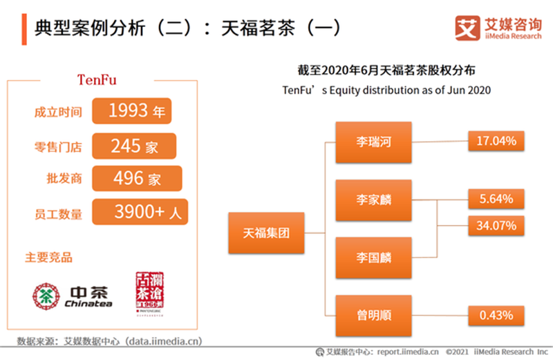天福茗茶品牌隶属于天福集团名下产业,创办于1993年,主要经营传统中式茶产品,集茶叶加工、销售、科研、文化、旅游为一体的全方位茶业品牌。天福集团母公司位于福建省福州市,目前在港股上市,截至2020年12月28日,股价为5.99港元/股,港股市值为66.20亿元。