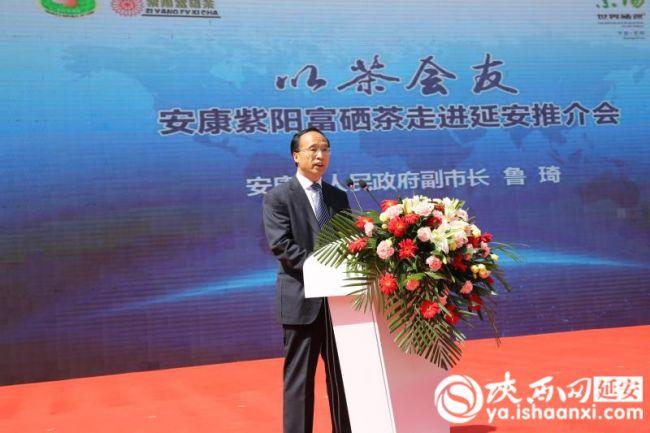 鲁琦在致辞中说,延安市和安康市都是革命老区,都有红色的历史记忆、鲜明的地域特色和厚重的人文情怀,在新时代新长征路上,两市红绿绽芳华,携手谱华章。紫阳县作为安康富硒资源的核心聚集区、全市富硒茶重点主产区,近年来,紫阳县委、县政府把富硒茶产业发展的一张蓝图绘到底、一任接着一任干,使紫阳的绿水青山正在变成金山银山,富硒资源的独特优势正在变成生态经济优势,小茶叶托起了群众脱贫致富奔小康的大梦想。此次送健康活动的举办对于深化两市合作、推动茶果产业互动、促进经贸文化旅游交流、助力脱贫攻坚,必将起到极大促进作用。真诚期待和欢迎延安的各界朋友、各方客商到安康开发富硒资源,投资富硒产业,共建富硒茶乡。