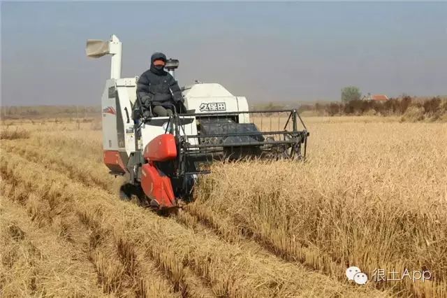 【现代化收割·最便捷】到了9月,水稻成熟了,两台收割机就开始工作了,收割机只是对稻杆进行切割,并不会对米产生任何损害。