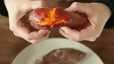 小心拿出刚烤好的蜜薯,边吹边撕开焦香的酥脆外皮,香喷喷的热气一瞬间直往鼻子里钻,轻咬一口,糖汁般的甜味迅速占满整个口腔!