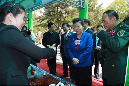 这几天的八大处公园可谓是盛装迎客,万余盏大红灯笼,上万盆各色花卉,如梭的游客,满座的观众,俏姑娘、帅小伙、汉剧、歌舞你方唱罢我登场,观茶艺表演,品富硒食品,还有北京最大的茶壶招眼“待客”,浓浓的节日气氛扑面而来。据悉,本届茶文化节以“同饮汉江水,共品富硒茶”为主题,以生态安康、人文安康为主线,龙泉·汉水泡绿茶是本届茶文化节最大的亮点。4月24日,石景山区和安康市在八大处公园举行了隆重的汉水进京接水仪式,千里迢迢远从陕西安康运抵首都北京的汉江水与八大处龙泉同泡富硒绿茶,供游客品尝。同时,极富陕南特色的茶艺表演和汉剧展示将从开幕式一直持续到5月1日,来自汉剧之乡——陕西安康的民间汉艺术团将在八大处公园二处广场上演汉剧《打金枝》等传统戏曲,列为首批国家非物质文化遗产的紫阳民歌也将在园内唱响。茶文化节期间,主办方还将在八大处公园派出所路和大槐树周边搭建27个富硒茶(食品)特装展区举行展示展销,重点是富硒茶叶产品、富硒食品的展示、展销。国内资深富硒专家还将就富硒茶与人类健康在园内举办专题讲座,以此让更多北京市民认识安康富硒茶及丰富的茶文化。同期举办的活动还有陕西安康富硒茶供佛斋僧甘露法会和两地书画家笔会活动。