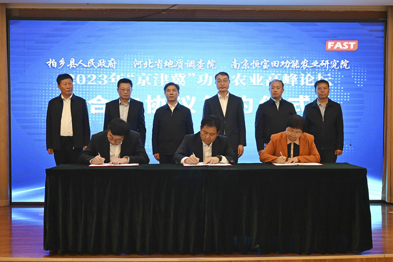 仪式上,柏乡县政府副处级干部王靖利代表县政府分别与好乡亲农业科技河北有限公司、南京恒宝田功能农业产业研究院签署了《打造河北省富硒功能农业产、销一体化模式样板》三方战略合作协议;与河北省地质调查院、南京恒宝田功能农业产业研究院签署了《打造河北省硒资源变硒产业样板基地》三方战略合作协议。