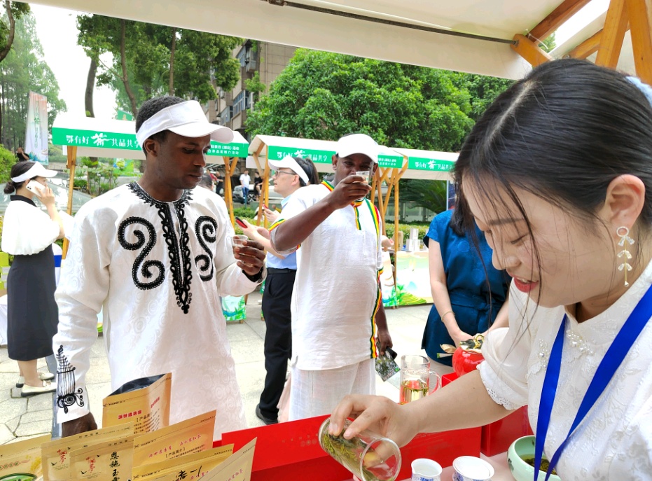 来自卢旺达的留学生现场品尝咸丰白茶。彭信琼 摄