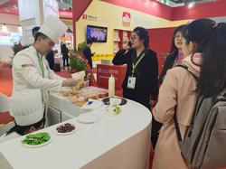秋然米业的工作人员为国内外参展商以及消费者介绍产品