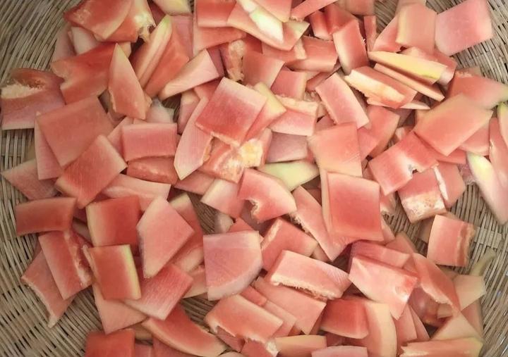 晒干的木瓜干,用来炖肉比鲜香的好吃太多了,而且随时都可以吃到。在没有蔬菜的季节还可以做替代品,真的一举两得。