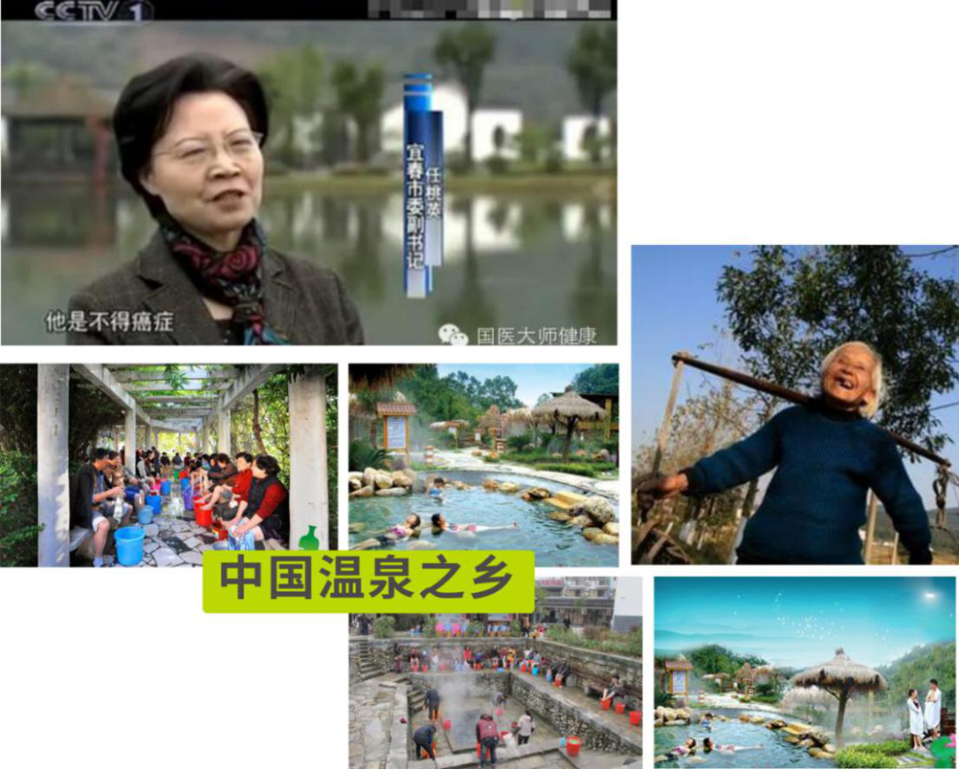 在被誉为中国唯一的高富硒温泉养生胜地的宜春温汤,不仅难得看到肥胖的本地人,3万多居民中也几乎找不到戴眼镜的,更神奇的是,据有关部门调查发现,解放六十多年来,温汤镇居民没有发现一例癌症的病例。这与温汤镇居民常年取用温泉水有直接关系,中央电视台曾以“我村无癌”为主题多次报道。