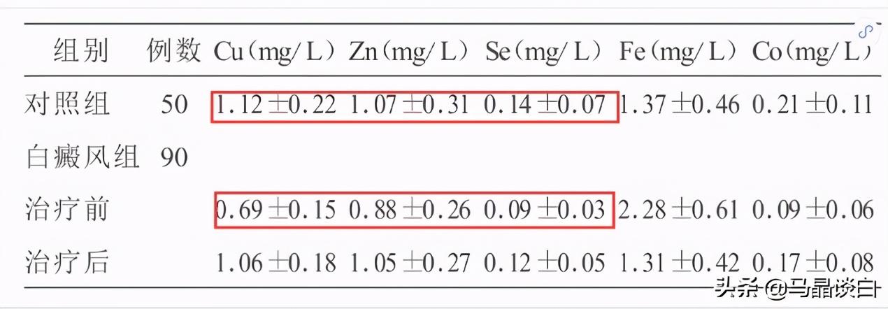 引自论文《白癜风患者微量元素营养状况的临床分析》