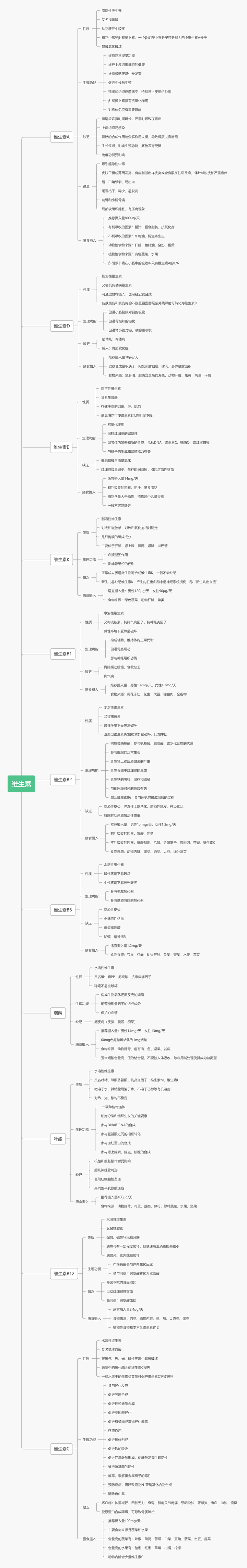 由于维生素B的作用实在太过广泛,一条一条地说显得过于啰嗦。我会在文章的最后放一张总结性的思维导图,供读者查询用。这里只介绍代表性的几点。