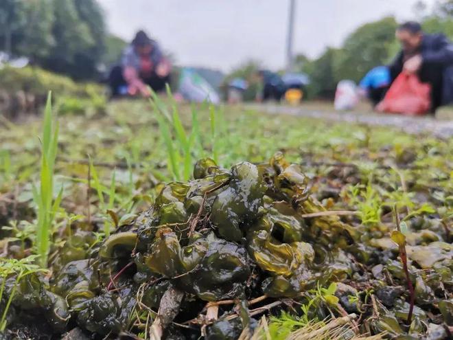 每当雷雨过后,你会看到不少老年农民朋友,他们或蹲坐在山坡草地间,或在河边堤岸上,细心地采集着附着在地表的地皮菜。