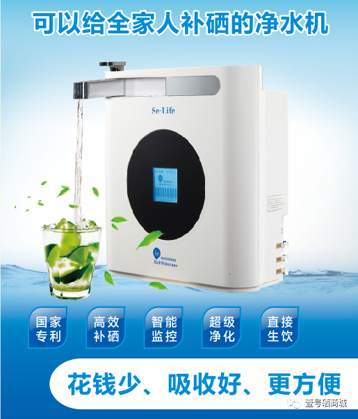 可以给全家人补硒的净水机:花钱少、吸收好、更方便,可常温直饮,泡茶、冲奶粉、煮饭、煲汤等,全智能提醒更换滤芯,管家式售后服务