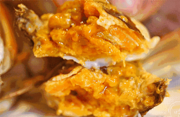 每一只大闸蟹都足够有料,上手掰开,金黄的蟹膏蟹黄就满到溢出来。