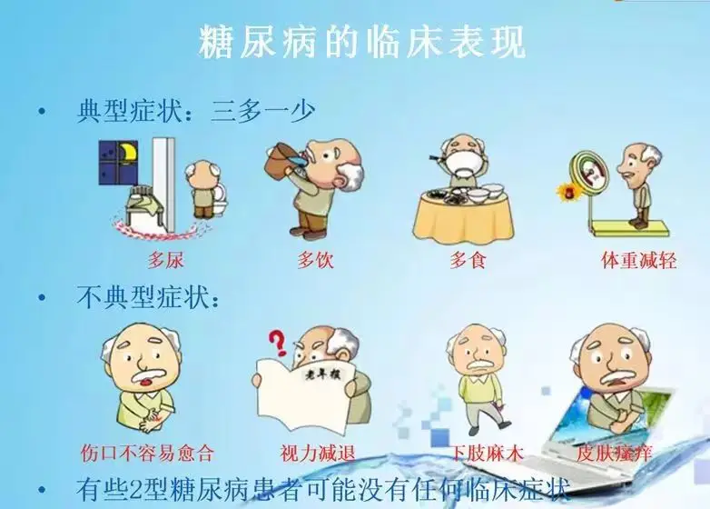 糖尿病(Diabetes)分1型糖尿病、2型糖尿病、妊娠糖尿病及其他特殊类型的糖尿病。在糖尿病患者中,2型糖尿病所占的比例约为95%。 1型糖尿病