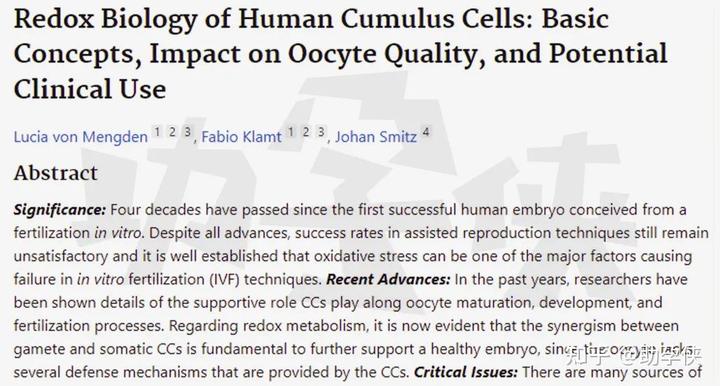 在2020年发布的一篇医学文献中就专门讲述了氧化应激对卵细胞质量的影响。文中提到:活性氧ROS(自由基的一种)在健康卵泡生理过程中,对卵细胞发育成熟过程非常重要。
