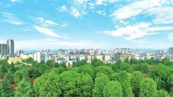 蓝天白云下,新田县楼宇林立,绿树苍翠,景美如画。近年来,新田县在大力实施城市建绿、增绿工程的同时,不断完善城市基础设施和功能配套,畅通城市“微循环”,持续改善城市水生态,打造15分钟生活工作圈,城市变得更加宜居宜业。