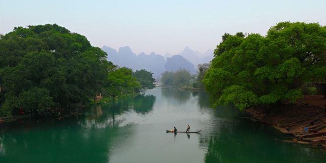兴坪镇位于阳朔东北部,距县城25公里,漓江在此绕了一个大弯。兴坪依山傍水,风景荟萃,粉墙乌瓦石板小巷,是漓江沿岸最美丽的古镇。