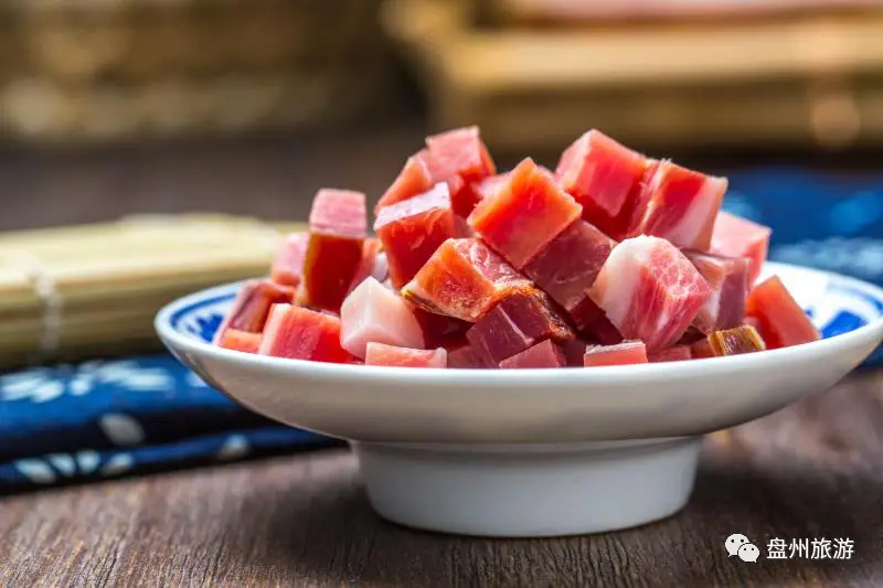 盘县火腿是盘州市的传统饮食之一。盘县火腿又名“火肉”“兰熏”,是腌制或熏制的猪腿,它肉质滋嫩,香味浓郁,咸香可口,以色、香、味、形著称,因而被誉为“中国三大名腿”之一。