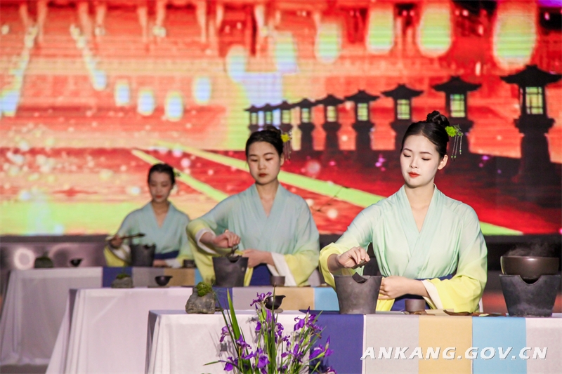 “一对红鸦雀(喜鹊)飞起飞落叫喳喳,叫声姐姐快烧茶,后院客来啦!……”活动以陕南民歌舞《姐姐快烧茶》开场,体现了家里来客要烧水泡茶的陕南民间传统习俗和热情好客的淳朴民风。《年年有个三月三》《茉莉茶歌》《茶飘香》等丰富多彩的茶专题现场表演,充分诠释了采茶制茶、沏茶饮茶的多姿形态和茶乡人民的淳朴风貌。陕西省非物质文化遗产传承项目紫阳毛尖茶传统制作技艺传承人曾朝和,以及新一代茶人龙珊,与嘉宾们分享了安康制茶匠人对古法技艺的保护与传承。