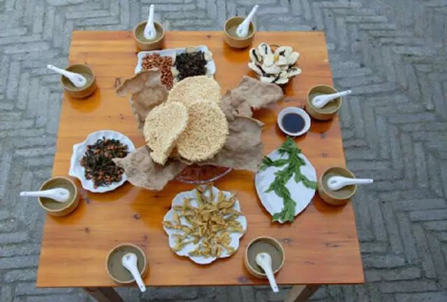 茶膳,以土家油茶为主,搭配香脆松酥的米花、荞皮、黄饺、花生米、农家糍粑等;将炸好的米花放入盛有油茶的碗中,它会发出扑哧扑哧的响声,让人乐不思蜀。