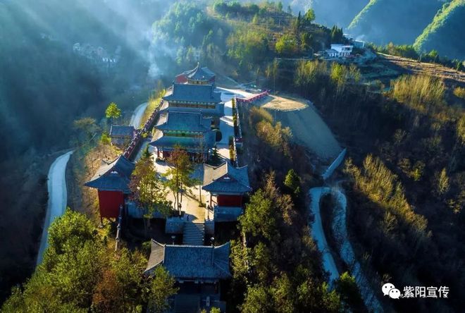 位于紫阳县城南岸的文笔山,道教南宗创始人张伯端(号紫阳真人),曾在此修行悟道,著有《悟真篇》,后成为道教南宗祖庭。