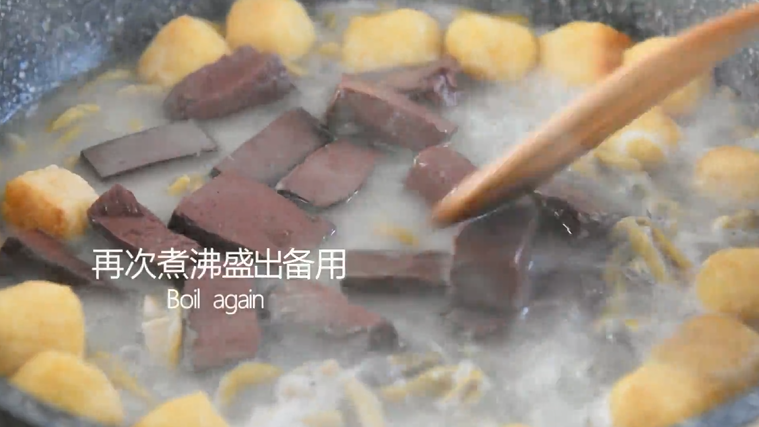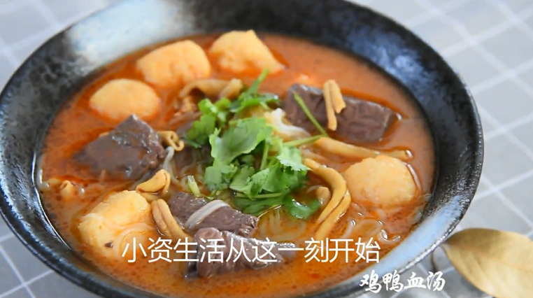 2、鸭血放盐水浸泡可祛除腥味。粉丝稍晚放以免过软。高汤选用骨头汤、鸡汤。