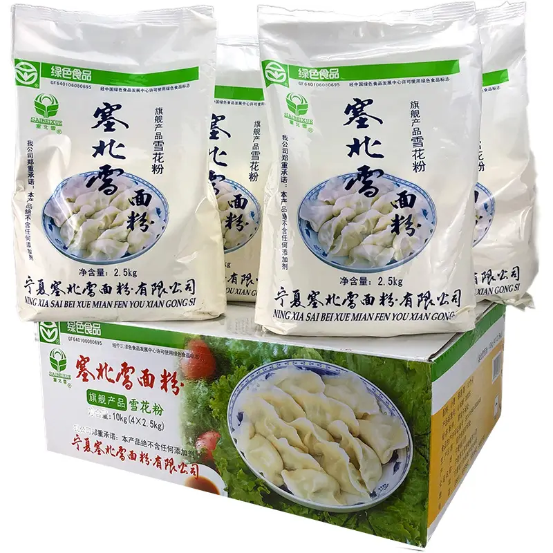 宁夏塞北雪面粉有限公司生产的塞北雪面粉是由小麦中心部分的胚乳磨制而成。面粉灰分含量低,粉质天然洁白,面筋质量好,是比特制精粉加工精度更高的面粉。