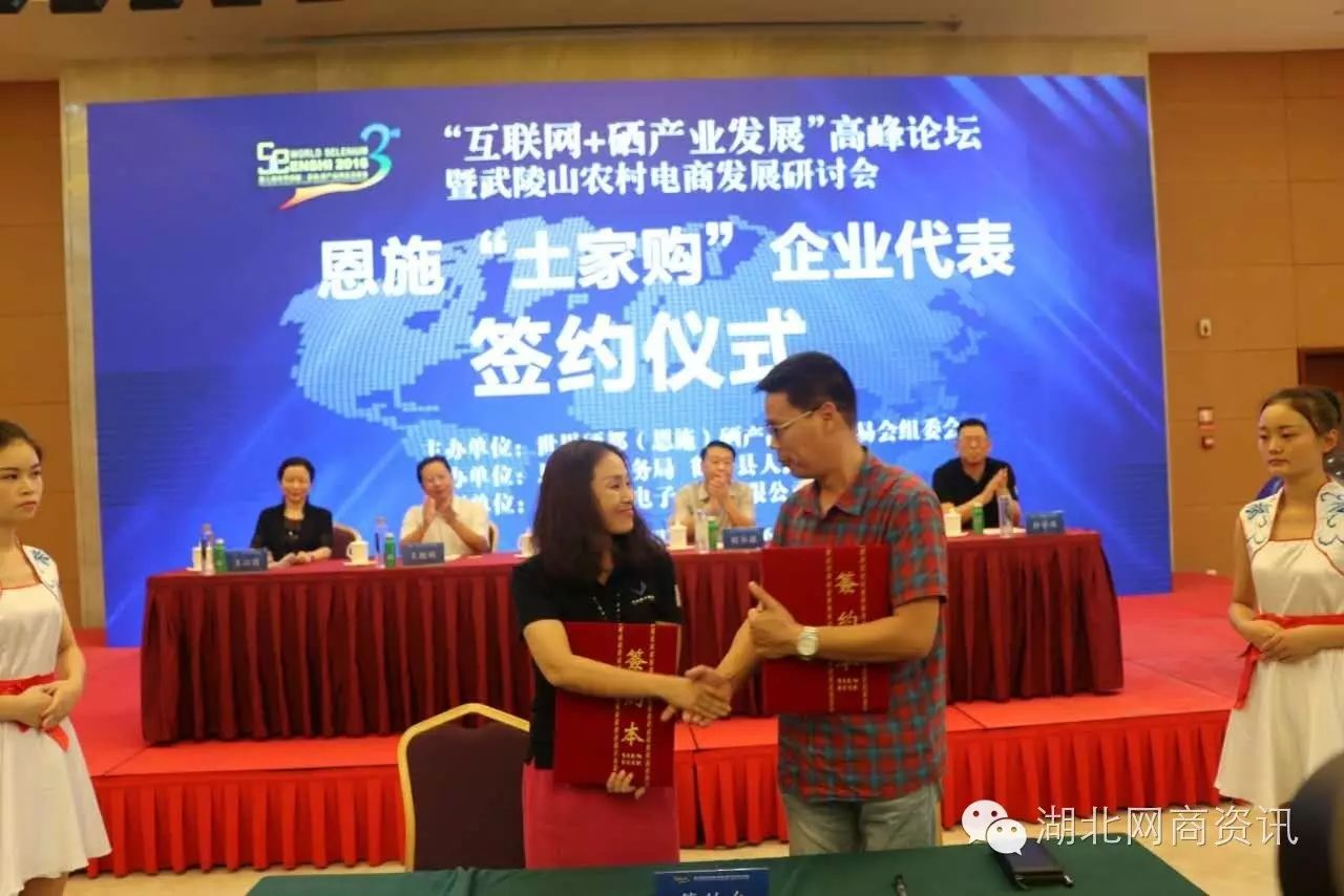在本次高峰论坛上也举行了恩施土家族电商平台——土家购上线仪式。恩施州把大力发展电子商务产业作为扶贫攻坚的重要措施和手段之一,武汉火凤凰与恩施州合作开发土家购电商平台,旨在减少中间环节,让全州的优质商品通过电子商务走向全国、全球。骑龙茶业、金贝嘉、武汉恩康三家土家购的供应商企业当场进行了签约。