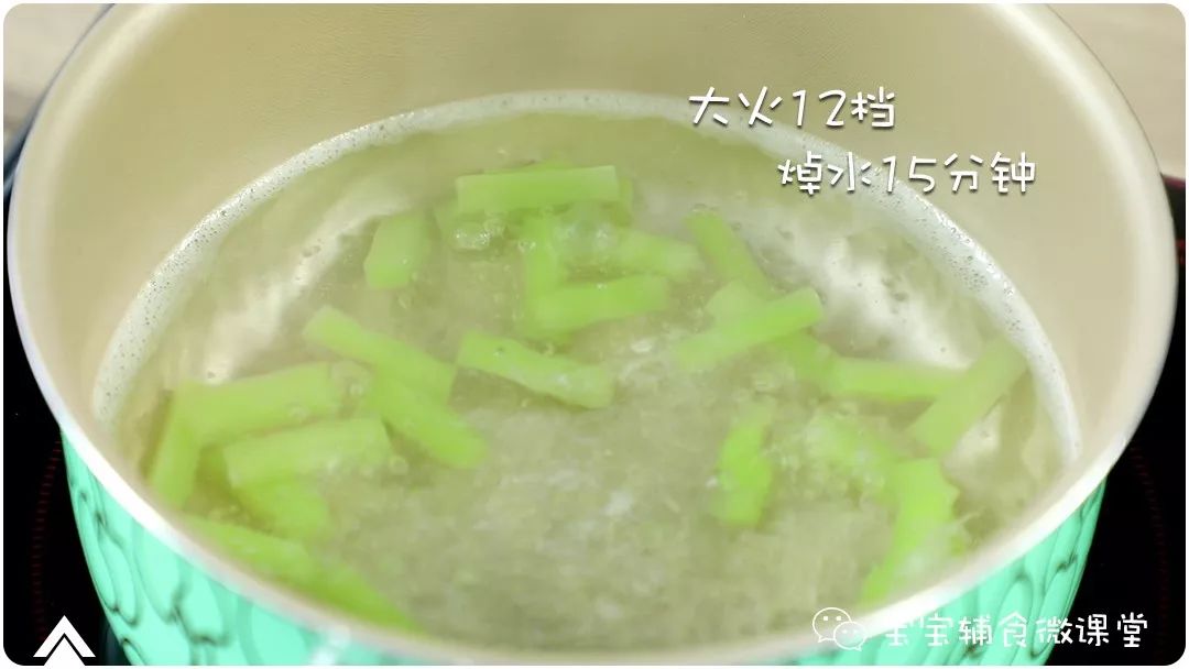 我选用当季的莴笋来做辅食,它有丰富的维生素、钙、铁、磷、钾、镁等微量元素,适合刚添加辅食的小宝宝食用,能增强身体的免疫力。