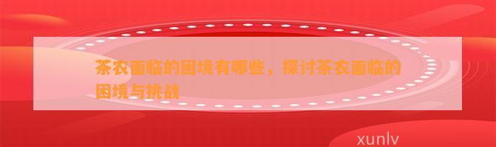 茶农面临的困境与问题:深度解析