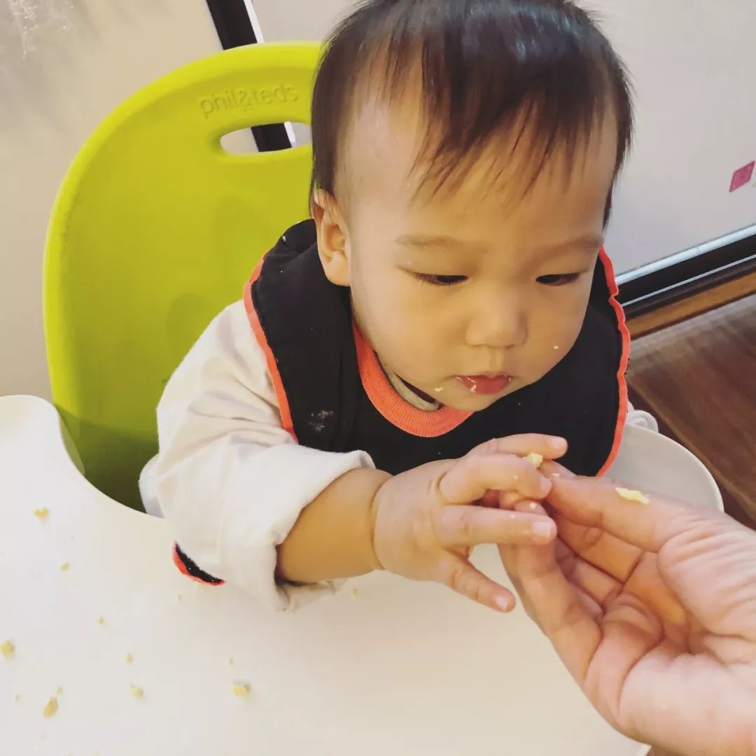 实际上,美国儿科学会认为,当孩子可以坐稳,并且可以把手或手里的东西准确地放入嘴里时,就可以给“手指食物”,让孩子学习自主进食了。