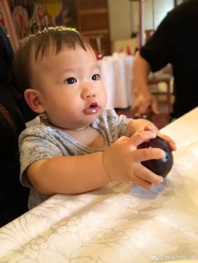 △我抱着他,取自助餐的时候,没留意到他已经自己从点心塔上抓了一块糕点,塞嘴里了。